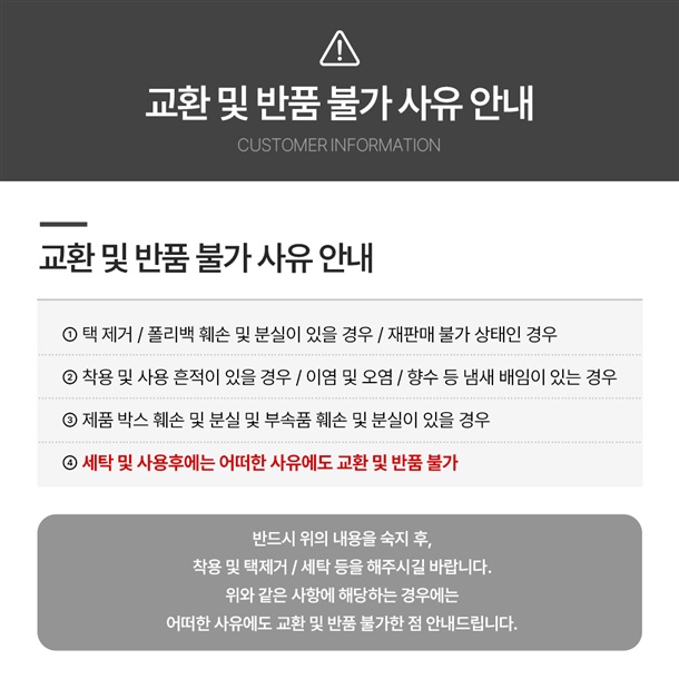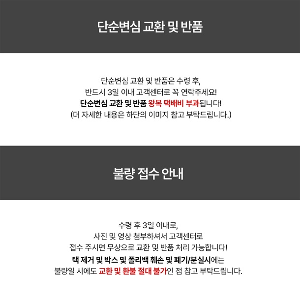 · 상품 불량 사유와 사진을 남겨 주시면 빠른 처리가 가능합니다.